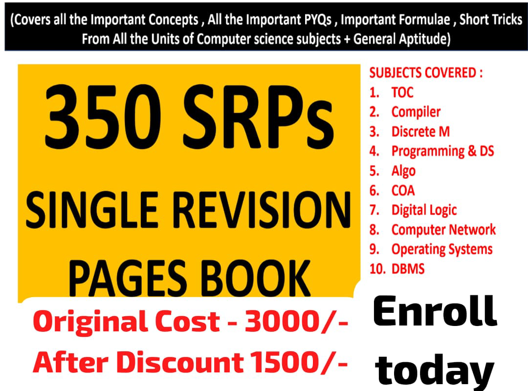 In 350 SRPs book - Best Revision Book FOR GATE CS & IT & UGC NET CS , we have covered all important concepts , important formulae and important previous year questions from all units .